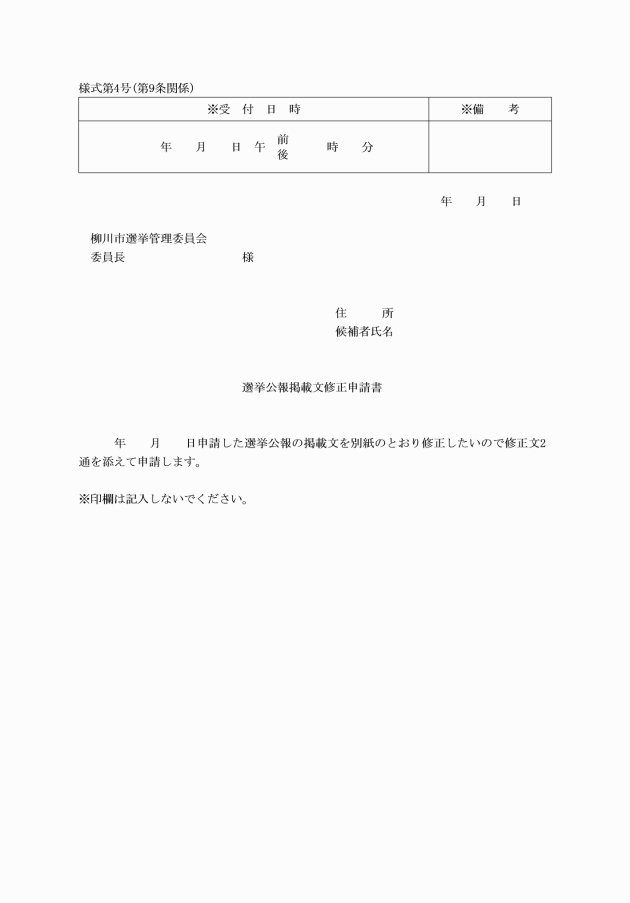 第4条 掲載文は、委員会が交付する選挙公報掲載文原稿用紙(様式第3号)に黒色の色素により記載しなければならない。