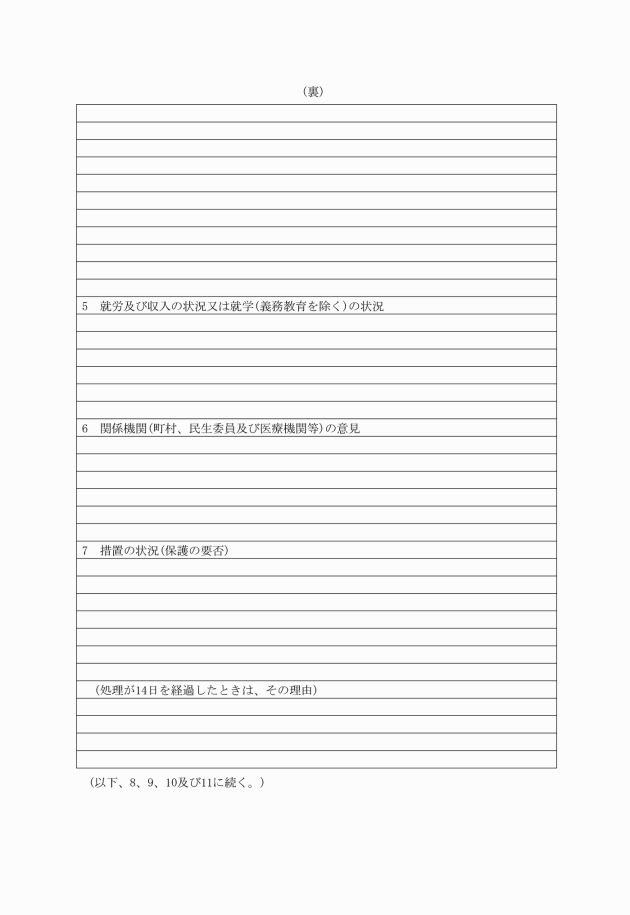 第8条 所長は、法第30条第1項ただし書の規定により、被保護者を救護施設、更生施設若しくはその他適当な施設に入所させ、若しくはこれらの施設に入所を委託し、又は私人の家庭に養護を委託するときは、これらの施設の長又は私人に対して入所等依頼書(様式第38号)を発行しなければならない。